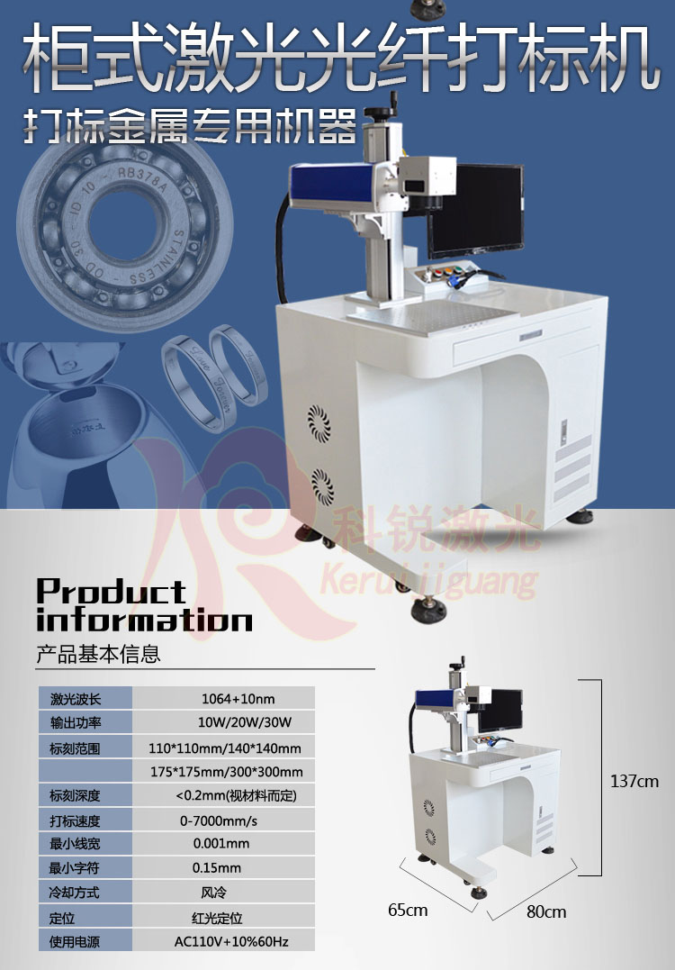 當(dāng)今國(guó)際上*********激光標(biāo)記設(shè)備,具有光束質(zhì)量好,體積小、速度快、工作壽命長(zhǎng)、安裝靈活方便以及免維護(hù)等特點(diǎn)。廣泛用于是集成電路芯片、電腦配件、工業(yè)軸承、鐘表、電子及通訊產(chǎn)品、航天航空器件、各種汽車零件、家電、五金工具、模具、電線電纜、食品包裝、首飾、煙草以及軍用事等眾多領(lǐng)域圖形和文字的標(biāo)記,以及大批量生產(chǎn)線作業(yè)。光纖激光器,國(guó)際***新型,***可靠結(jié)構(gòu),體積小巧,耗電量小,無(wú)高電壓無(wú)需龐大的水冷系統(tǒng)(僅需約300W),光束質(zhì)量高,接近理想光束,USB接口輸出控制,光學(xué)掃描振鏡,激光重復(fù)頻率高,高速無(wú)畸變。